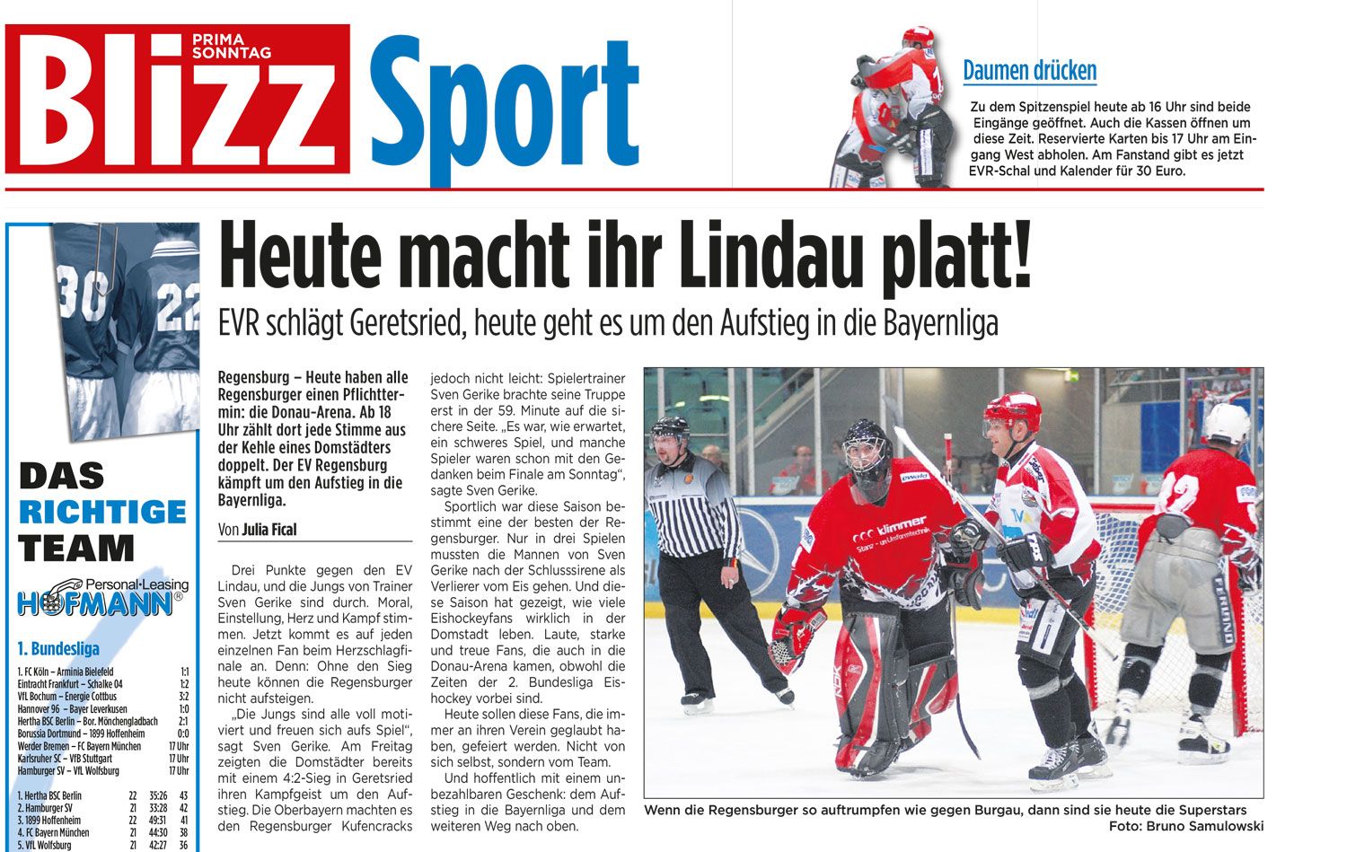 Diverse Fotos für Printausgaben und dazugehörige Fotogalerien - Online und Print für Blizz Aktuell Regensburg, Hockeyweb und Eishockey-Magazin.